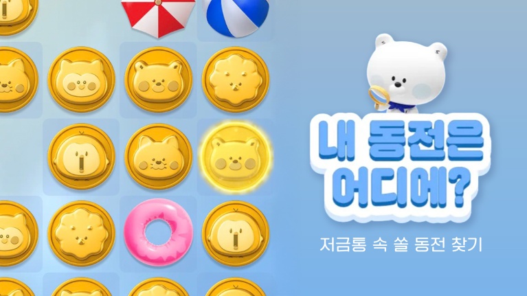 마지막으로, 가볍게 즐길 수 있는 캐릭터 미니게임 ‘내 동전은 어디에’도 새롭게 마련되었습니다. 여행을 떠나기 위해 동전을 모으는 쏠의 저금통 속에서 ‘쏠 동전’을 찾아내는 이 게임은 제한 시간 5초 동안 최대한 빠르게 동전을 찾으며 레벨을 클리어해 나가는 방식으로 구성되어 있어, 짧은 시간에도 흥미롭게 즐길 수 있습니다.